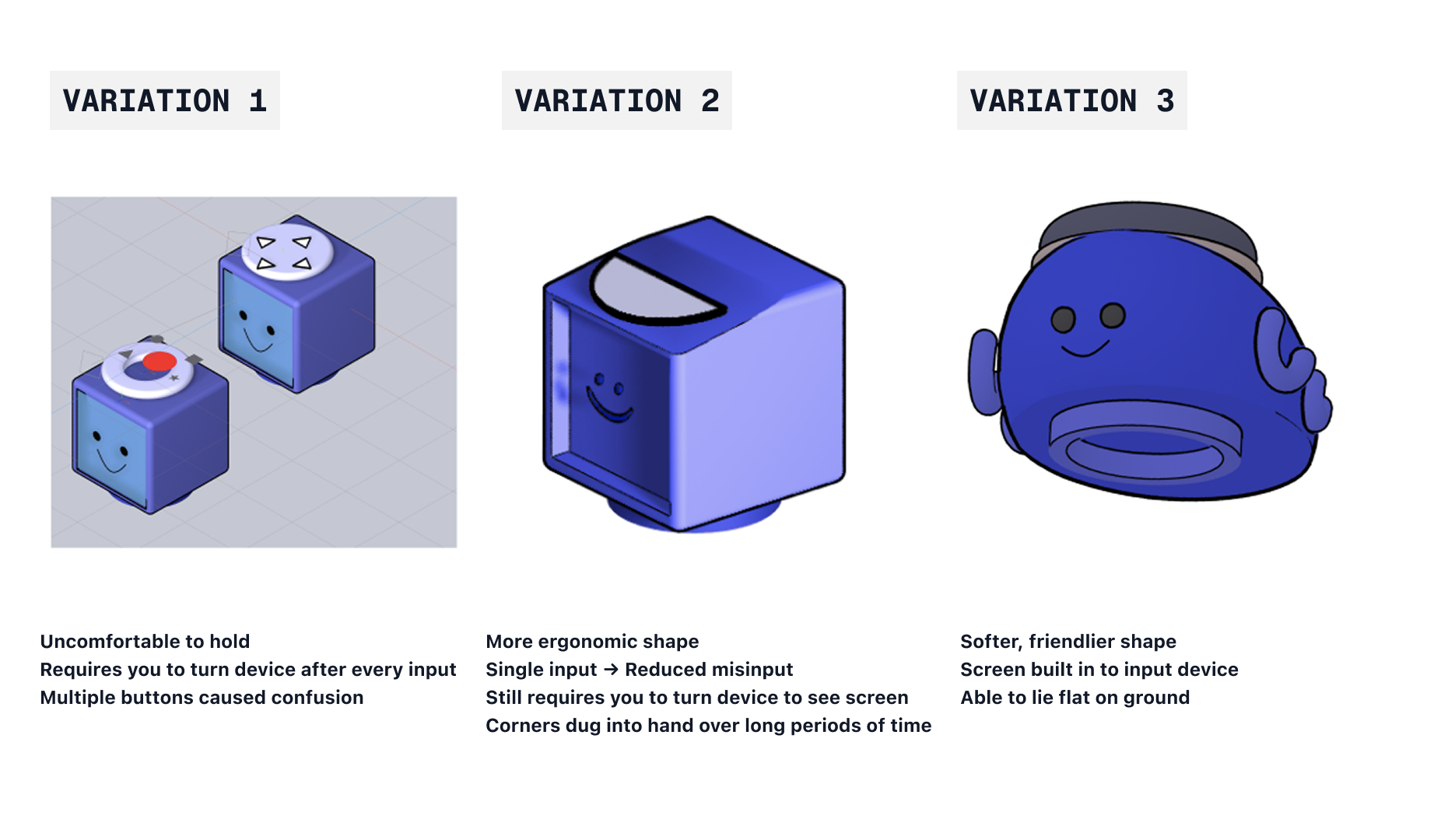 The last 3 weeks of the project were spent on realizing the design, moving from sketches, to low fidelity prototypes, to high fidelity prototypes, and finally to the final design. Due to this time constraint, clarity in the thee princples i gained from the research was crucial in the design process.